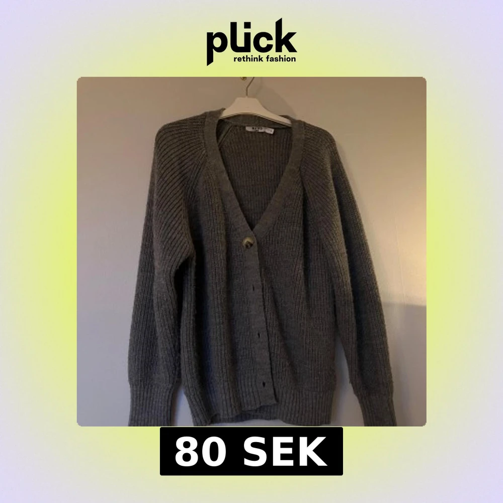 Mysig grå stickad kofta från NA-KD i storlek XS, men är mer av en S. Använt ganska mycket men har inga detaljer av användning! Den har inte nopprat sig alls, och sticks inte heller.