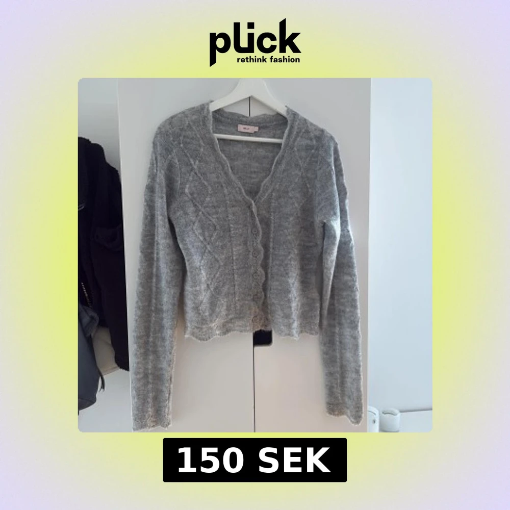Supermysig grå stickad kofta från Nelly med snygga knappar framtill. Koftan är croppad med lång ärm och har en vågig kant nertill för en trendig look. Perfekt att slänga över en topp när det är kyligt ute.