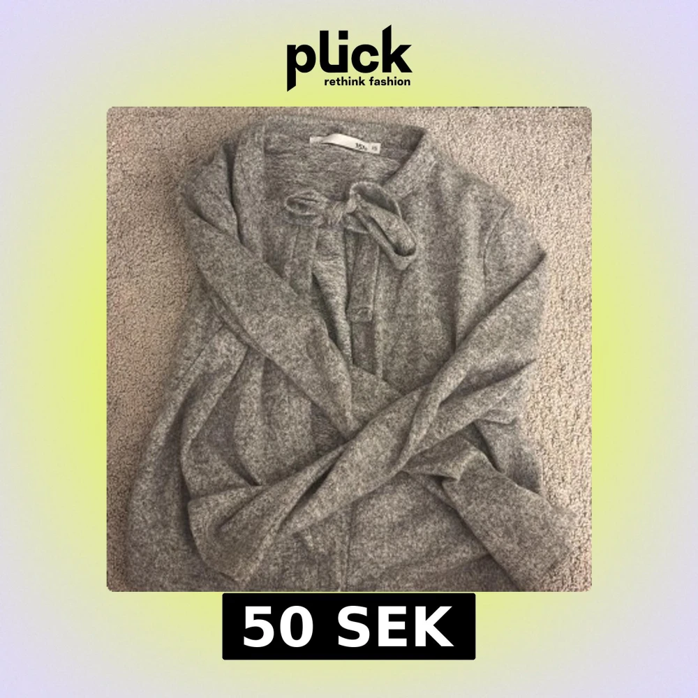 Mysig grå stickad kofta från 1517 i storlek XS. Koftan har ett snyggt knyt framtill vid halsen och långa ärmar. Perfekt för dig som gillar enkel och stilren design med en liten twist. Passar till jeans eller kjol för en chill look.