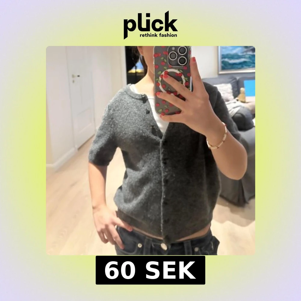 Mysig grå stickad kofta med korta ärmar och rund hals. Koftan har knappar framtill och en loose passform som ger en chill vibe. Perfekt att slänga över en t-shirt för en enkel och snygg look. Passar dig som gillar basic med en twist.