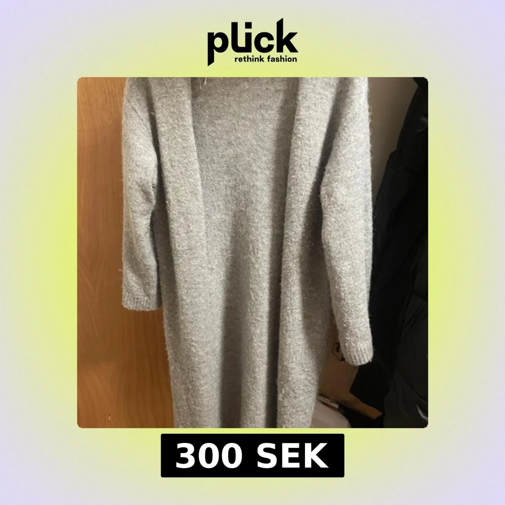 Mysig grå stickad långkofta med lång ärm och rak passform. Perfekt för kyligare dagar och enkel att styla med boots eller sneakers. Materialet är mjukt och ger en avslappnad vibe.