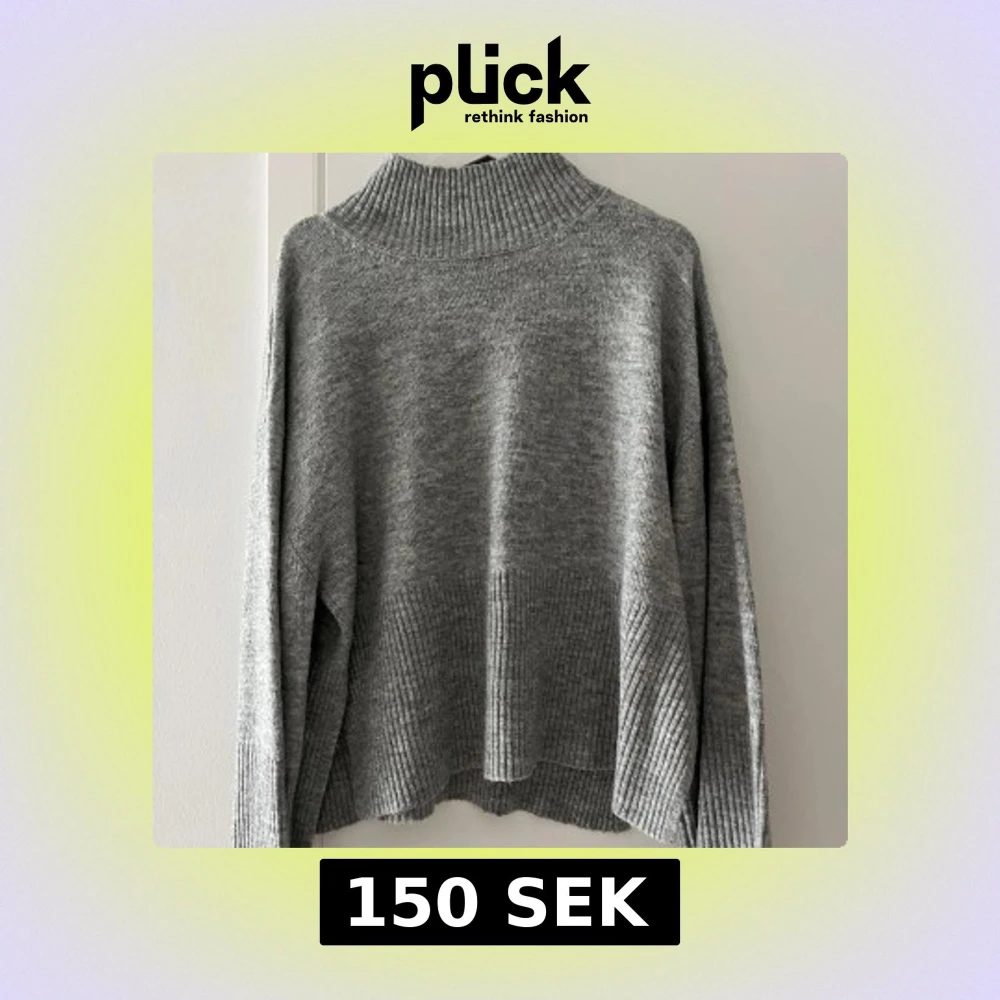 Mysig grå stickad polotröja med bred ribbad krage och ribbade muddar. Tröjan har en loose passform och långa ärmar, perfekt för kyliga dagar. Enkel att styla med jeans eller kjol för en avslappnad look.