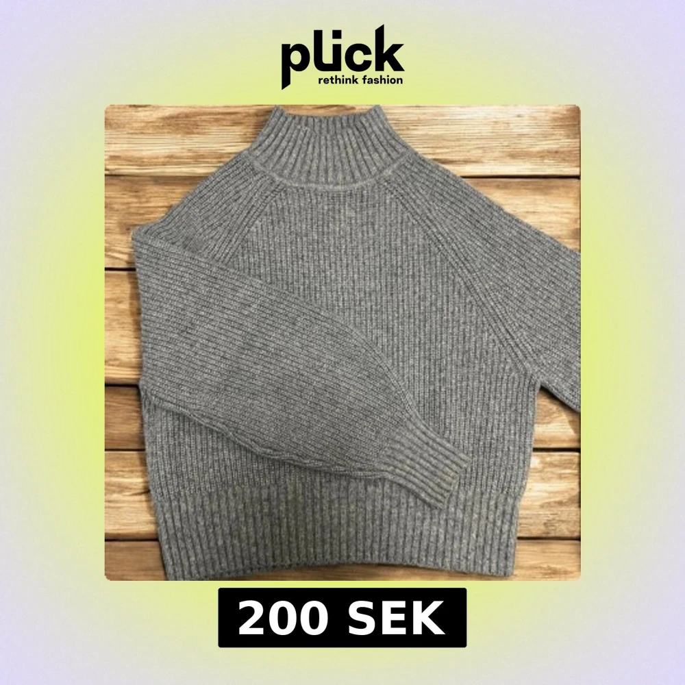 Säljer en grå stickad polotröja från H&M. Tröjan har ribbad struktur, hög krage och långa ärmar. Perfekt för kyliga dagar och enkel att matcha med olika outfits.