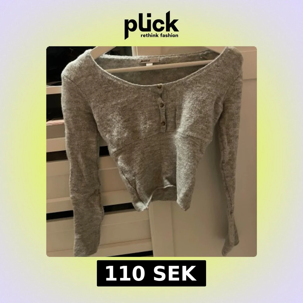Säljer en grå stickad topp från Subdued med lång ärm och rundad hals. Toppen har tre dekorativa knappar framtill och är croppad i modellen. Perfekt för dig som gillar enkel och stilren design med en cozy vibe.