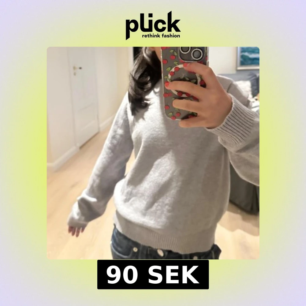 Mysig grå stickad tröja med rund hals och ribbade muddar vid ärmslut och nederkant. Perfekt för dig som gillar enkel och stilren look. Långärmad modell med normal passform, passar till jeans eller andra favoritplagg.