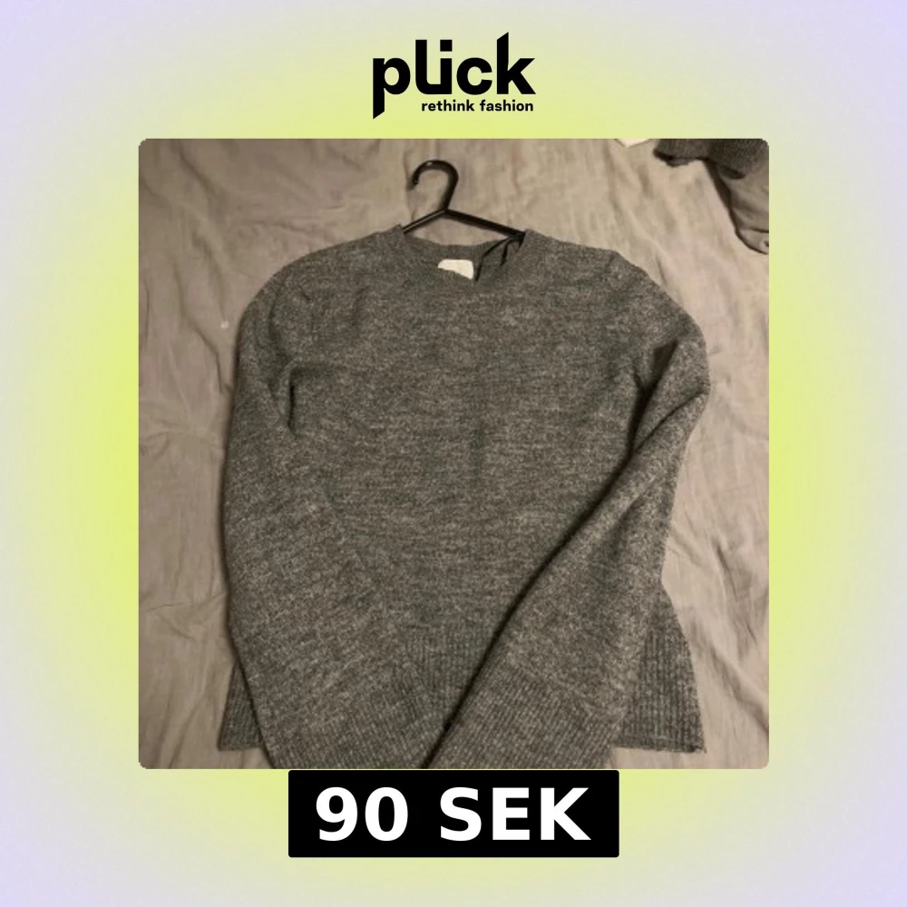 Mysig grå stickad tröja med rund hals och långa ärmar. Tröjan har ribbade muddar vid ärmslut och nederkant, vilket ger en snygg och enkel look. Perfekt att slänga på sig när det är kyligt ute.