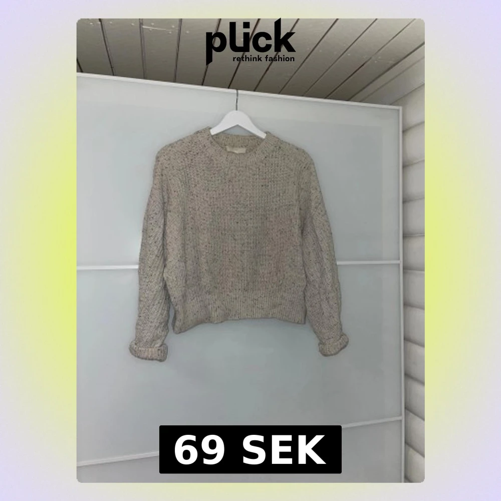 Säljer en beige stickad tröja i 100% bomull från H&M i storlek S. Perfekt för dig som vill ha en mysig tröja att bara dra på sig en kylig dag!