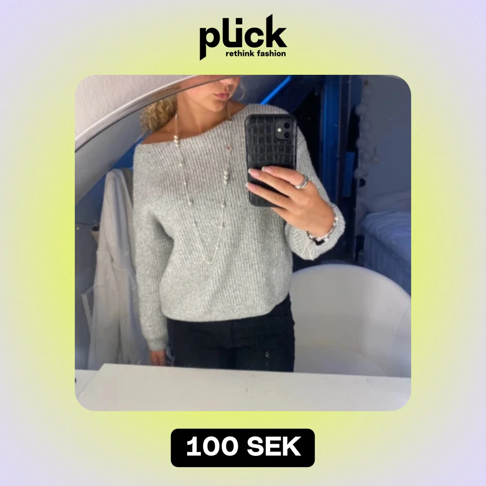 säljer denna gråa stickade tröja, som är perfekt till hösten💕💕 är använd få gånger och är i ett bra skick