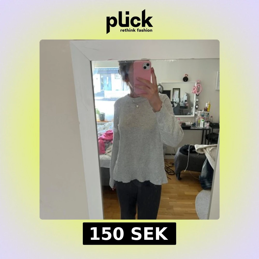 Snygg grå stickad tröja med ribbade detaljer vid ärmslut och nederkant, tröjan är i storlek L men passar mig som vanligtvis har S. Bara att höra av sig vid frågor!💗