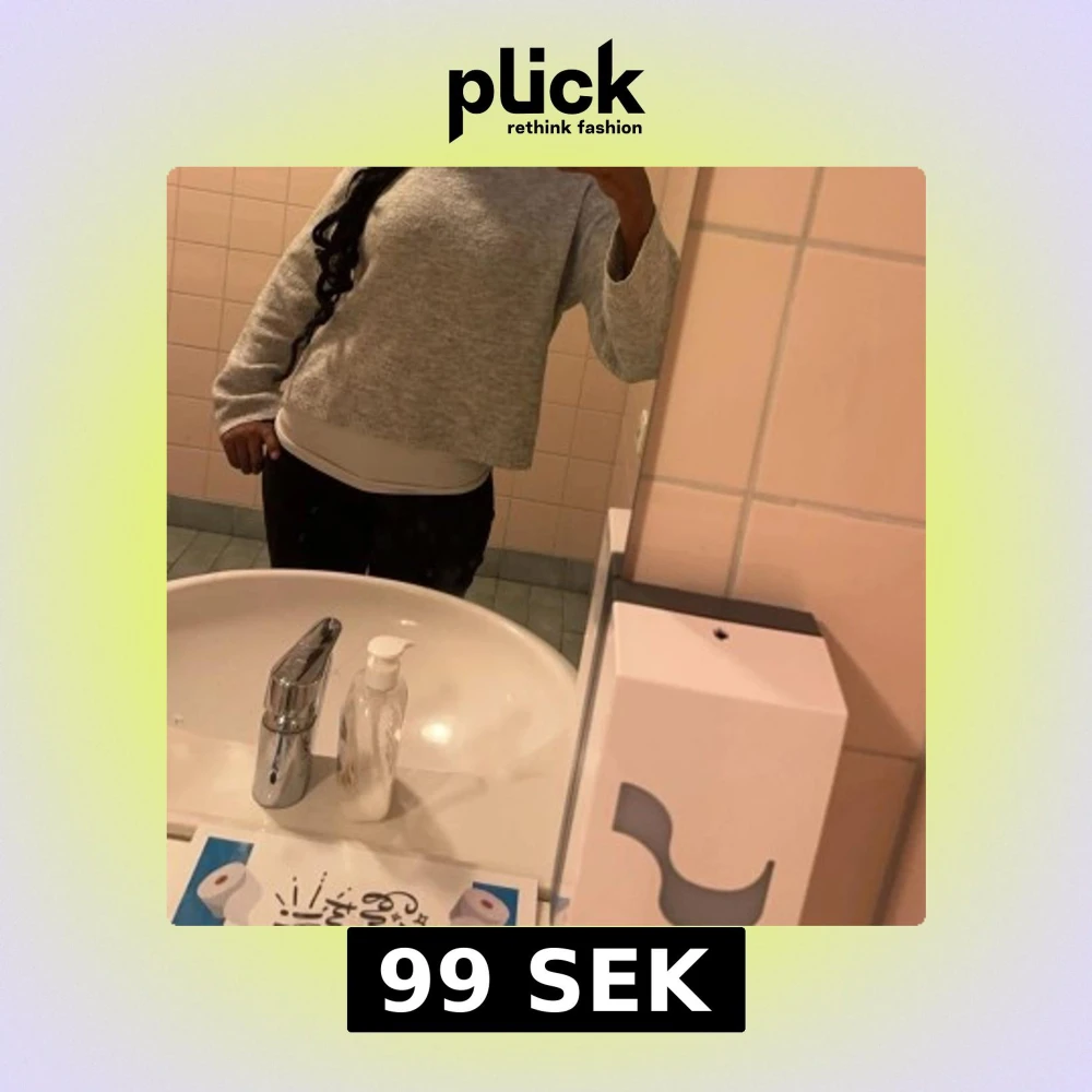 Säljer en mysig grå stickad tröja med långa ärmar. Perfekt för kyligare dagar och enkel att matcha med olika outfits.