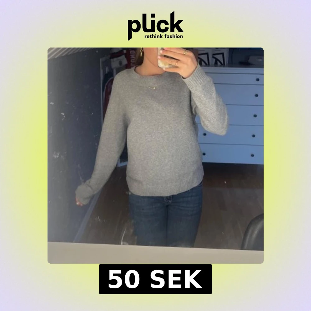 En enkel och stilren grå stickad tröja med rund halsringning och långa ärmar. Perfekt för lager-på-lager och passar till det mesta i garderoben.