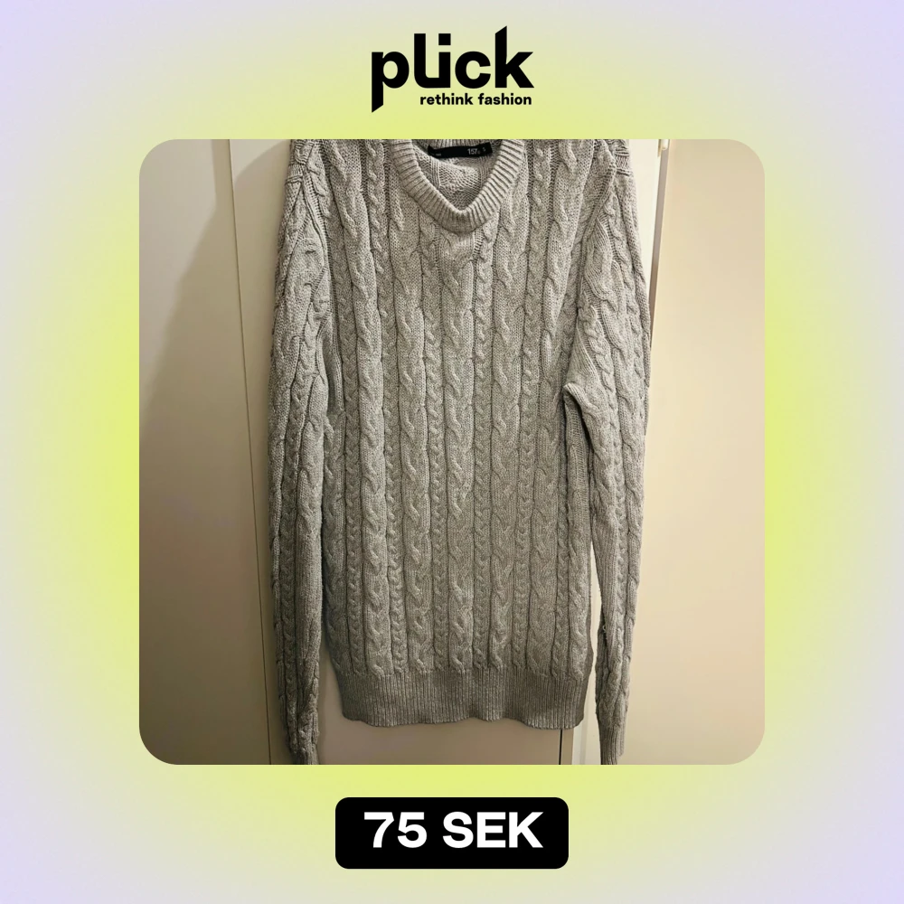 Säljer en snygg grå stickad tröja från 157 i storlek S. Den har ett klassiskt flätmönster och är perfekt för kyliga dagar. Tröjan är långärmad och har ribbade muddar vid ärmslut och nederkant. Supermysig och stilren för både höst och vinter!