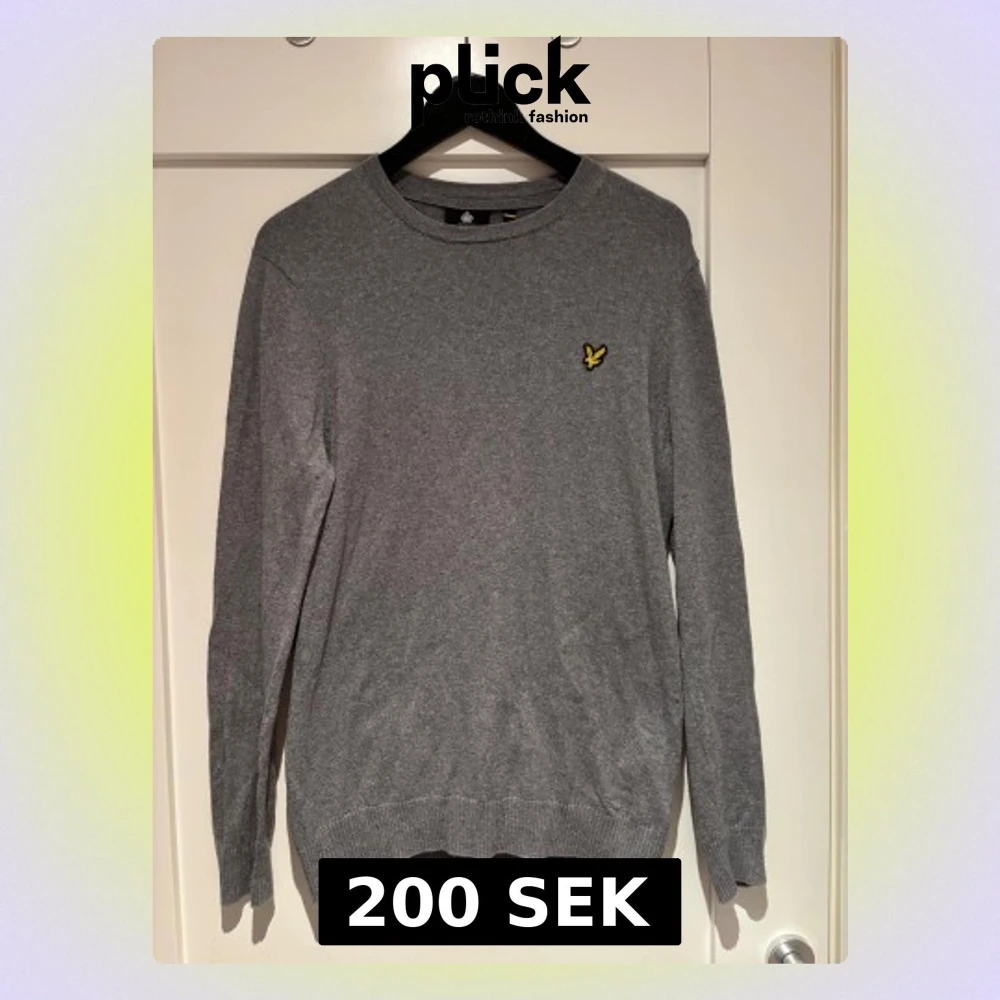 Grå stickad tröja från Lyle & Scott med rund hals och lång ärm. Tröjan är i mycket bra skick och har storlek M.