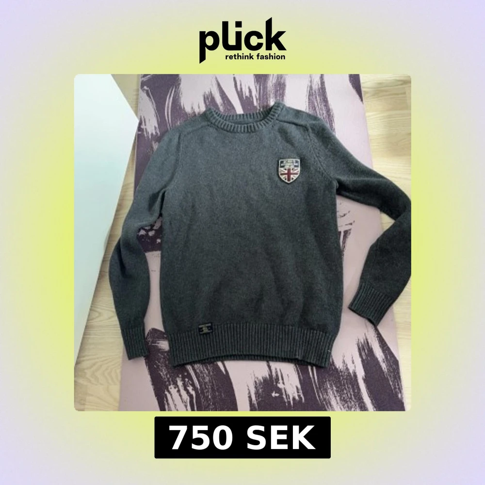 Mörkgrå stickad tröja från Morris Gents med rund halsringning och ribbade muddar. Tröjan har ett snyggt broderat märke med brittisk flagga på bröstet och en diskret etikett vid nederkanten. Perfekt för dig som gillar klassisk och stilren look.