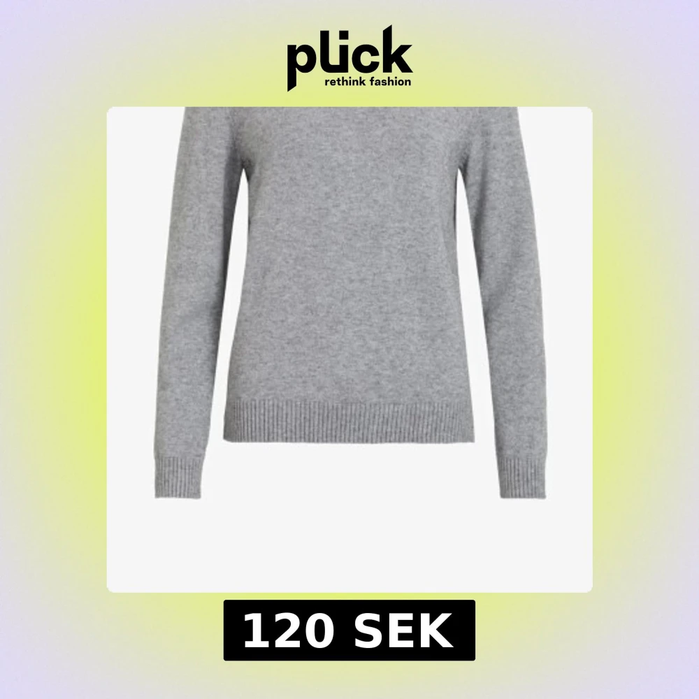 En enkel och stilren grå stickad tröja från VILA i storlek S. Tröjan har rund hals, långa ärmar och ribbade muddar vid ärmslut och nederkant. På bilden är den lite skrynklig, detta försvinner såklart om den får hängas ut i några dagar!!