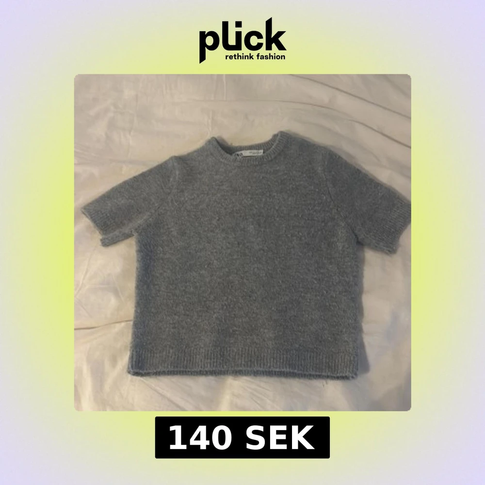 Mysig grå stickad kortärmad tröjafrån Zara i storlek S. Tröjan har korta ärmar med en rund hals. Köptes för cirka 330 kr. Har haft i ungefär 1,5 år men använder inte den