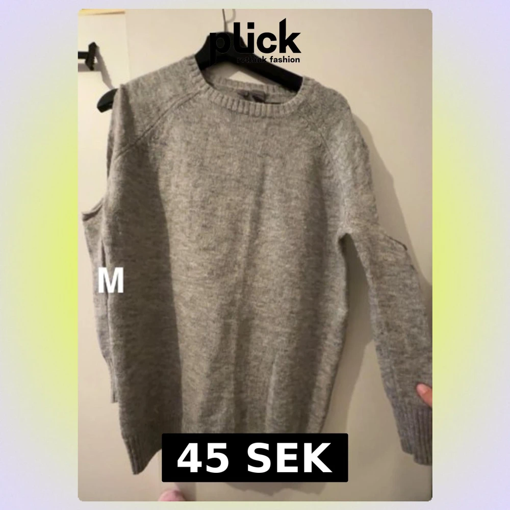 En enkel och stilren grå stickad tröja i storlek M. Tröjan har rund hals, långa ärmar och ribbade muddar vid ärmslut och nederkant. Perfekt för att hålla sig varm under kyliga dagar och passar till de flesta outfits.🌸 Fint använt skick. Öppningar vid axlarna ( som denna typ av tröja har, alltså ingen defekt )
