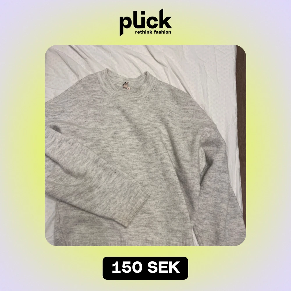 Mysig grå stickad tröja i ett mjukt material. Perfekt för kyliga dagar och att mysa i hemma. Tröjan har en klassisk rund hals och långa ärmar med ribbade muddar. Passar bra till både jeans och leggings för en avslappnad look.