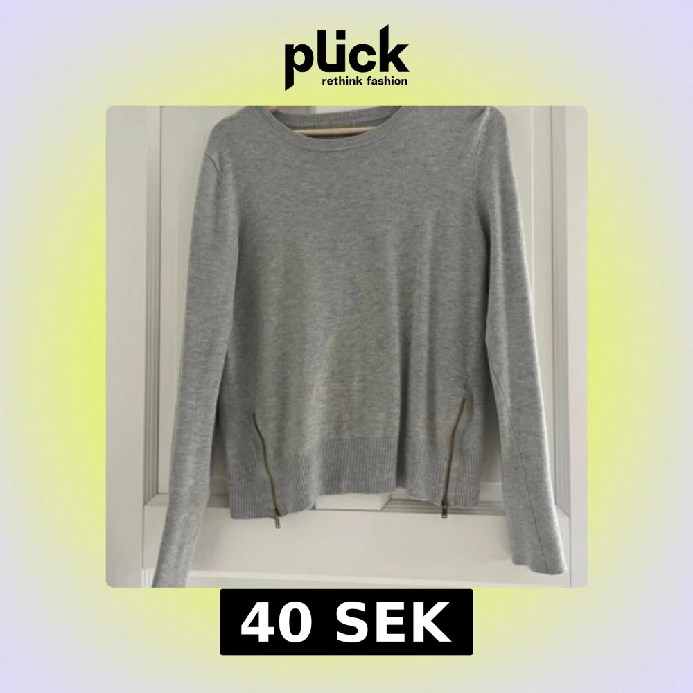 Snygg grå stickad tröja från InWear i storlek S. Tröjan har rund hals, långa ärmar och dragkedjor på sidorna vid nederkanten. Perfekt för hösten💞