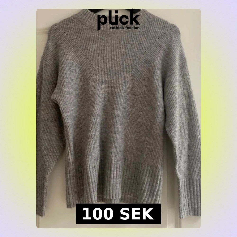 Säljer en grå stickad tröja med ribbad struktur och rund hals. Tröjan har långärmade och är perfekt för kyliga dagar. Enkel och stilren design som passar till jeans eller kjol. Mjuk och skön känsla tack vare det stickade materialet.