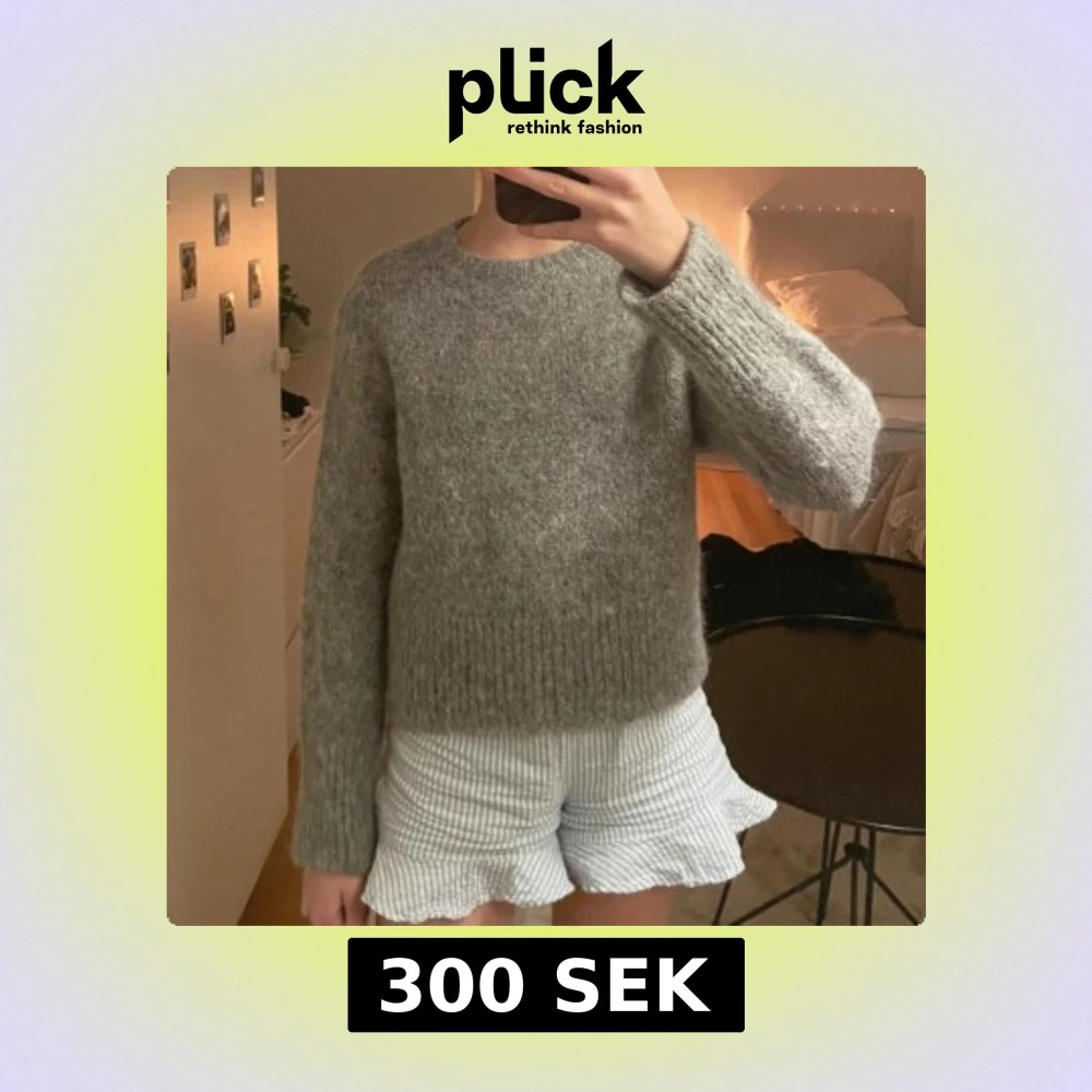 Mysig grå stickad tröja med rund hals och långa ärmar. Tröjan har en mjuk och fluffig textur. Är i helt nytt skick!