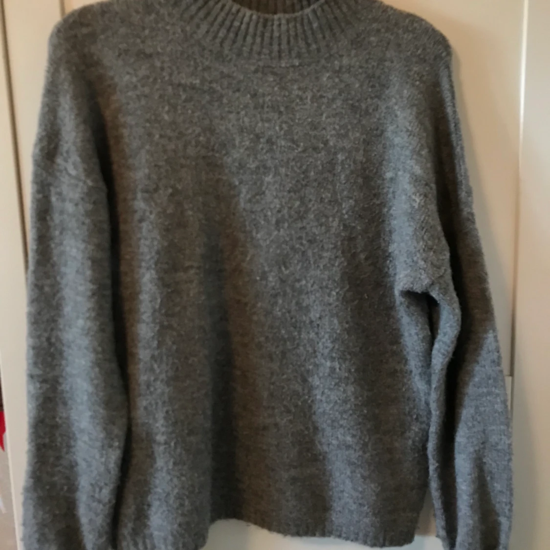 Grå stickad med lite polokrage. Väldigt varm till vintern
