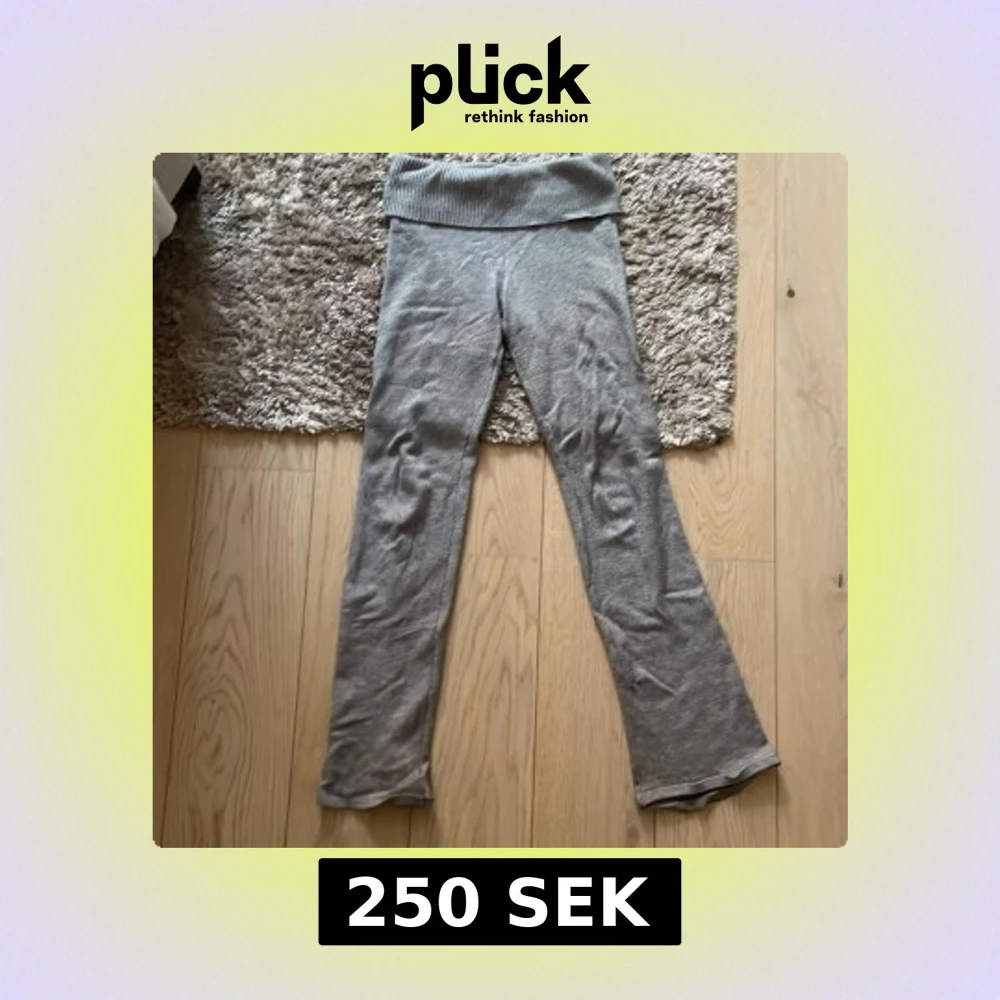 Grå stickade yoga pants från Gina Tricot med bred ribbad midja. Byxorna har en rak passform med lätt utsvängda ben och är perfekta för chill dagar. Supermjukt material som känns skönt mot huden.