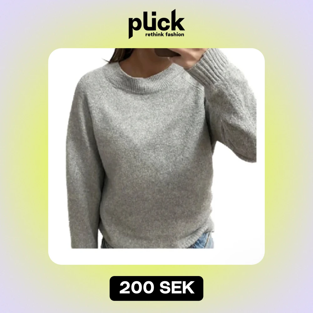 Säljer en supermysig grå stickad tröja som är perfekt för kyliga dagar. Perfekt för höst och vinter! kan upplevas nopprig pga efter användning