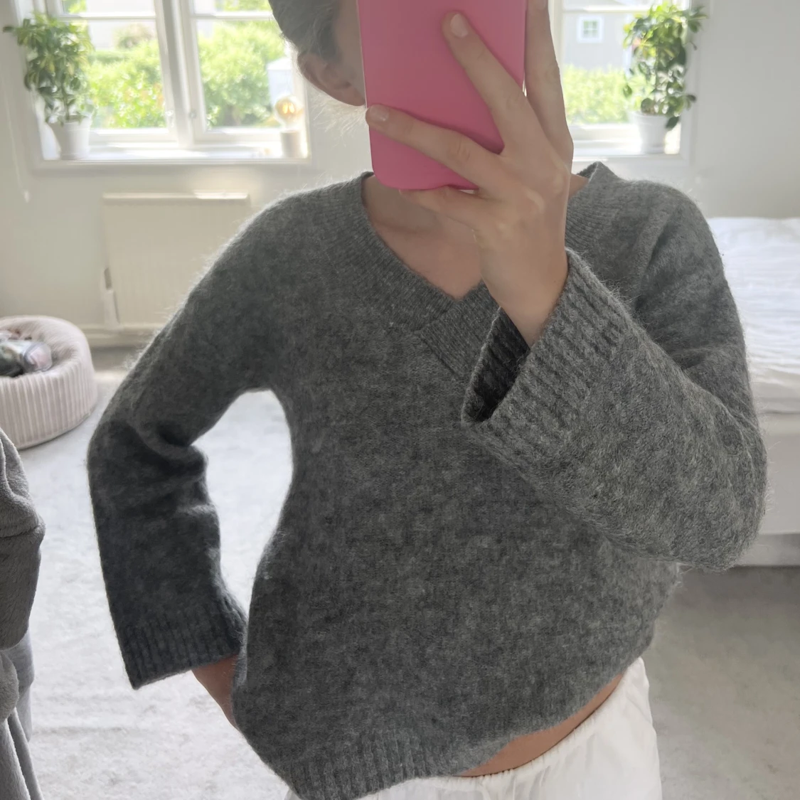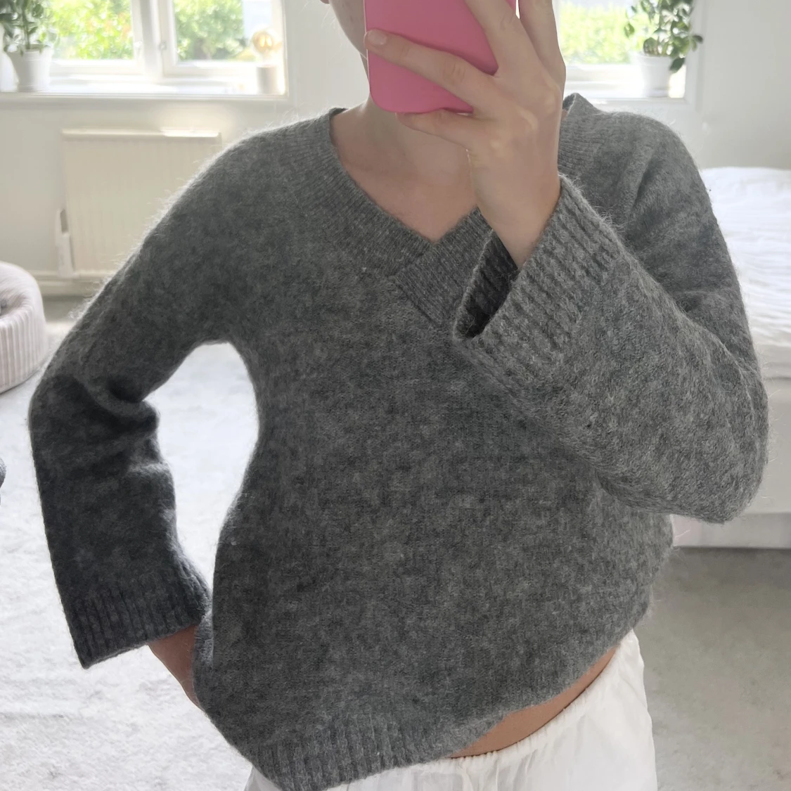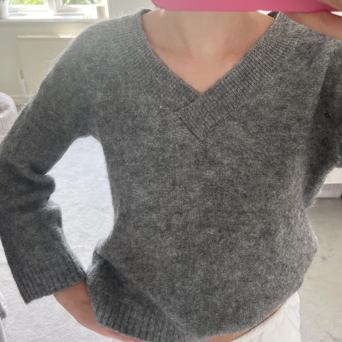 Grå v-ringad stickad tröja från h&m❤️