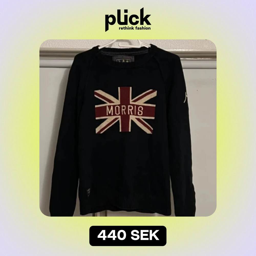 En mörkblå stickad Morriströja med en 🇬🇧 flagga på bröstet. Storlek M Inte använd mycket alls och är i riktigt bra skick! Skriv i DM om du undrar mer