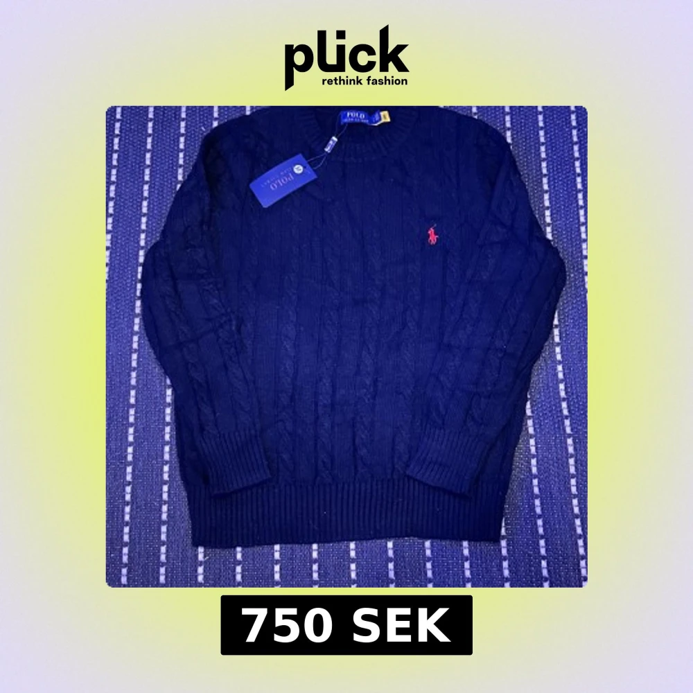 Snygg svart stickad tröja från Polo Ralph Lauren med klassiskt kabelstickat mönster och röd broderad logga på bröstet. Rund hals och långa ärmar med ribbade muddar. Perfekt för dig som gillar stilrena och tidlösa plagg. Priset kan prutas