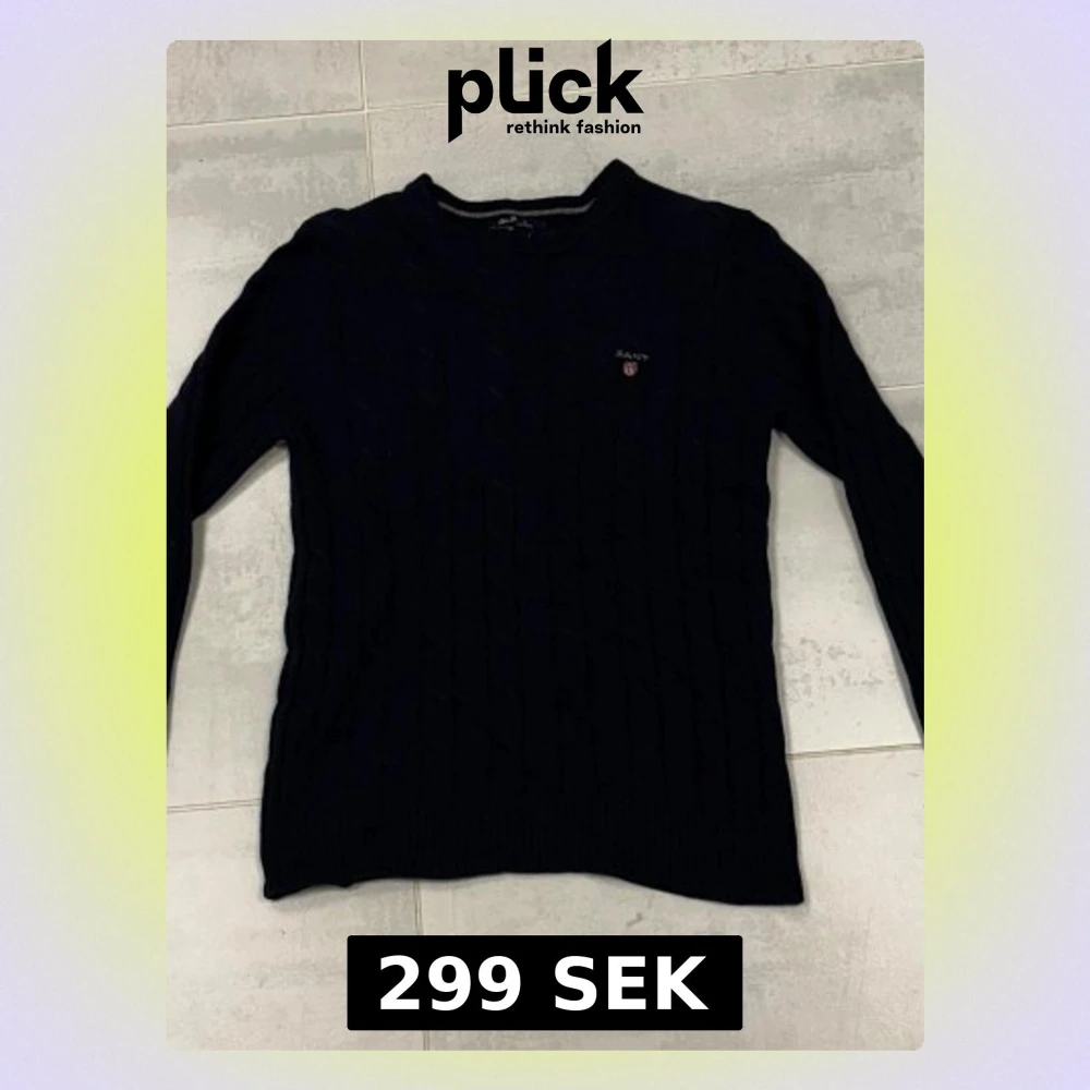 Snygg mörkblå kabelstickad tröja från GANT i mjuk lammull. Klassisk rund hals och diskret broderad logga på bröstet. Tröjan har långa ärmar och ribbade muddar vid ärmslut och nederkant. Perfekt för dig som gillar stilrena och tidlösa plagg.
