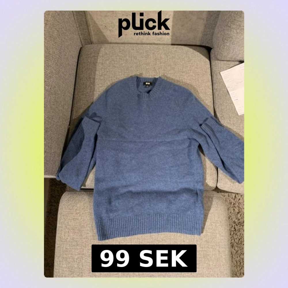 Pris kan diskuteras!Snygg blå stickad tröja från H&M med rund hals och ribbade muddar vid ärmslut och nederkant. Tröjan har en klassisk passform och är perfekt för dig som gillar enkel och stilren design. Materialet är mjukt och skönt mot huden.