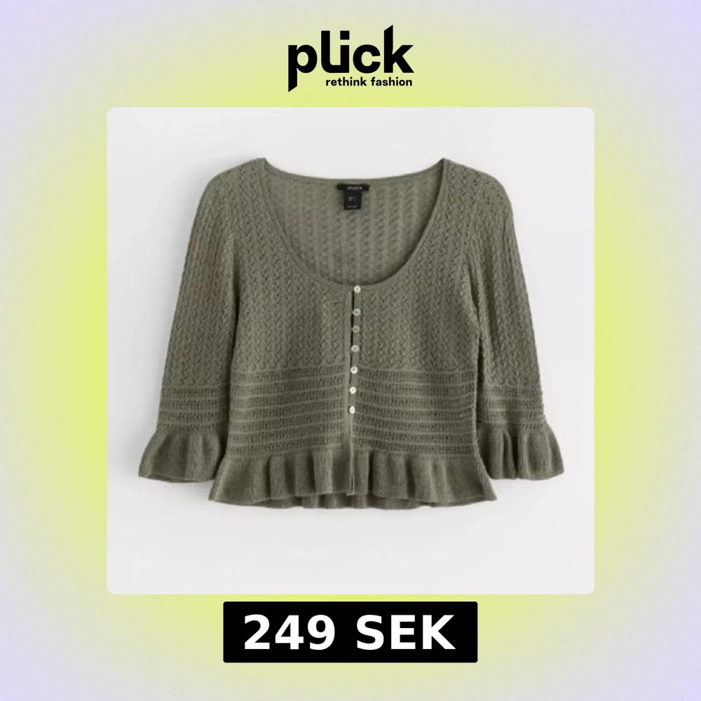 Stickad grön kofta med volang