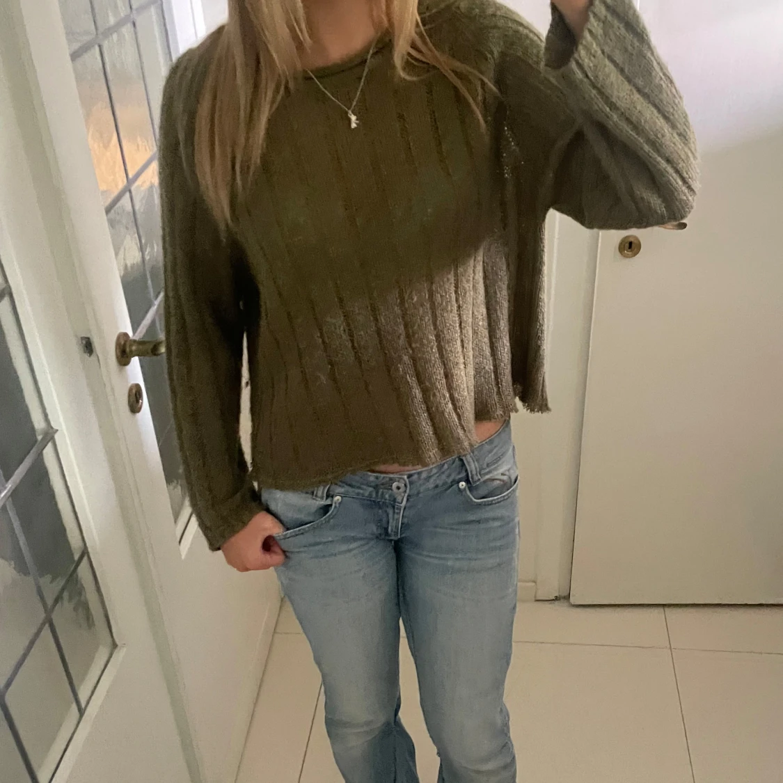Stickad tröja med en fin mossgrön färg, bra skick💕💕