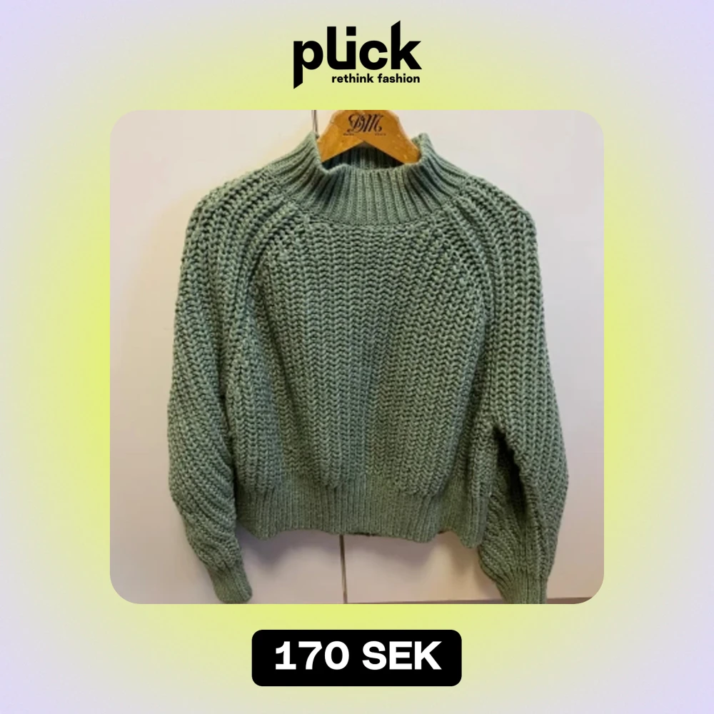 Tjock & härlig, grön, stickad tjocktröja! Perfekt till nu till svenska sommarkvällar eller blåsiga dagar till havs! Sista bilden är för att jämföra lite så man ser bättre vad tröjan har för färg!😊💚