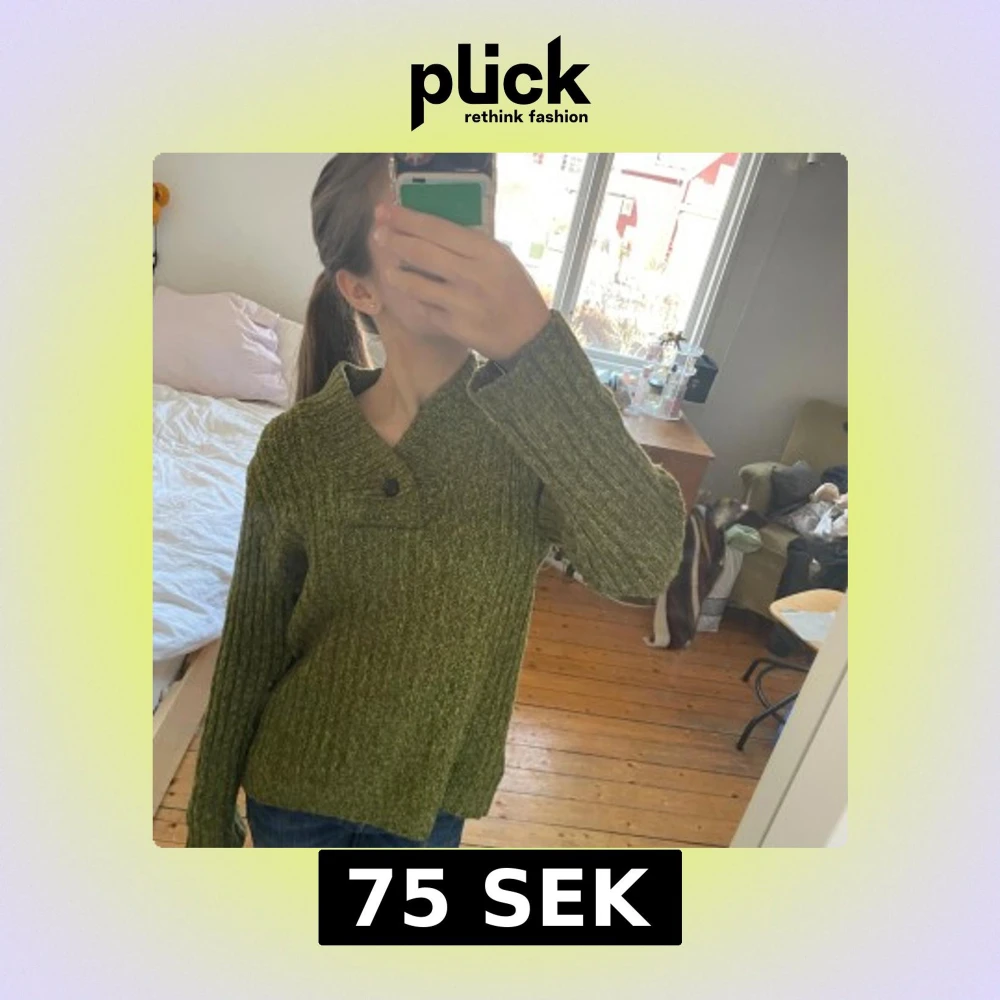 Säljer en snygg grön stickad tröja från Polarn O. Pyret. Tröjan har en unik krage med en knappdetalj och långa ärmar. Perfekt för kyligare dagar och ger en stilren look. Står att den är 146-152 men jag själv är 160 cm och den passar mig perfekt💕💕💕Tröjan är som ny och nästan aldrig använt den🫶🏻