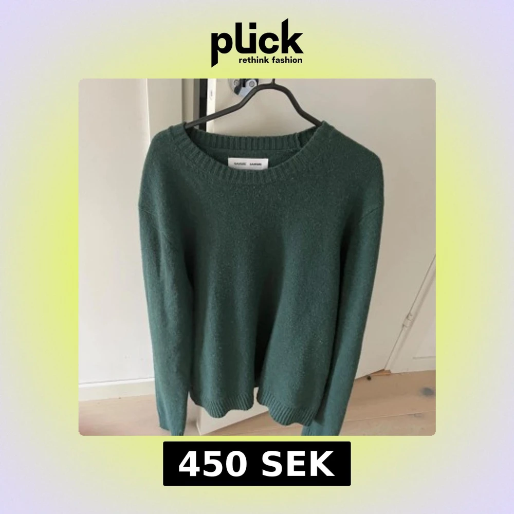 Mysig mörkgrön stickad tröja från Samsøe Samsøe i storlek XL. Tröjan har rund halsringning, ribbade muddar och är tillverkad av återvunnen manchester. Perfekt för lager-på-lager och chill dagar.