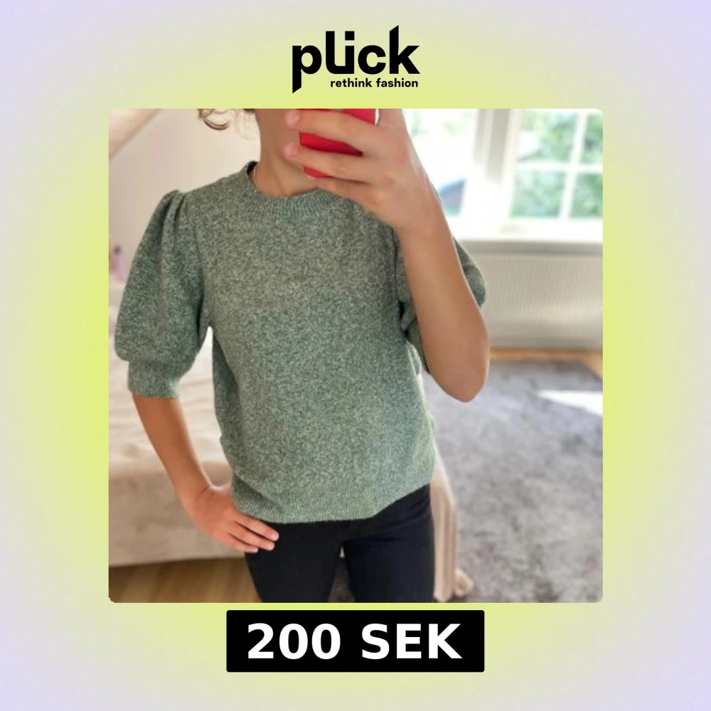 Superfin ljusgrön stickad tröja från Vero Moda med puffiga halvlånga ärmar och rund halsringning. Mjuk och skön, perfekt till både jeans och kjol. Tröjan har ribbade muddar och en snygg, enkel design som känns modern och fräsch.