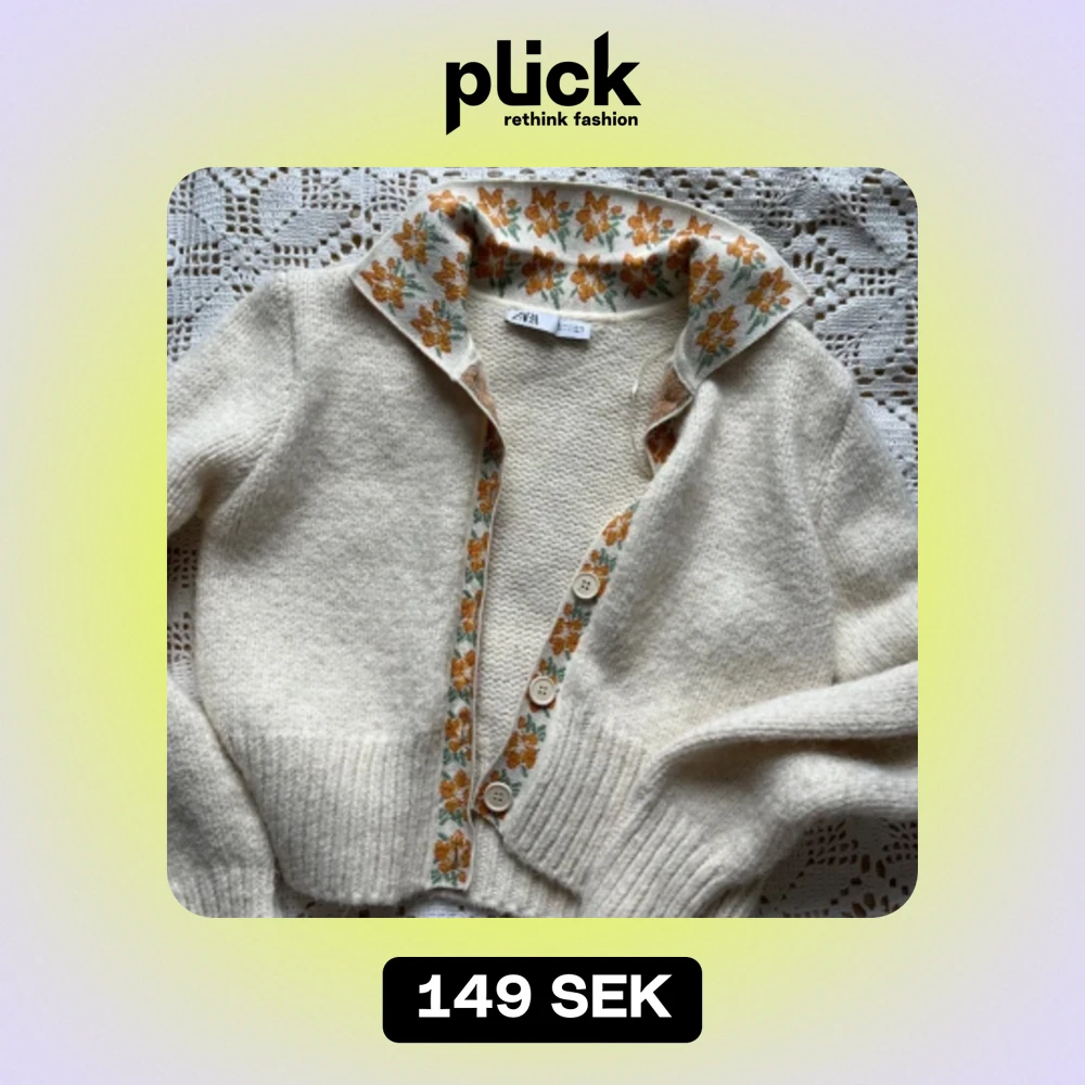 En jättefin stickad tröja med vintage blommigt tyg till krage.🌼🌻