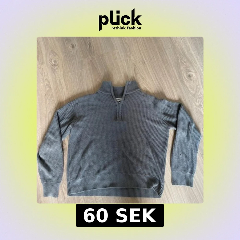 Snygg grå stickad tröja med ribbad struktur och half zip-dragkedja i halsen. Perfekt för lager-på-lager och chill stil. Långärmad och med hög krage som ger extra edge till outfiten.