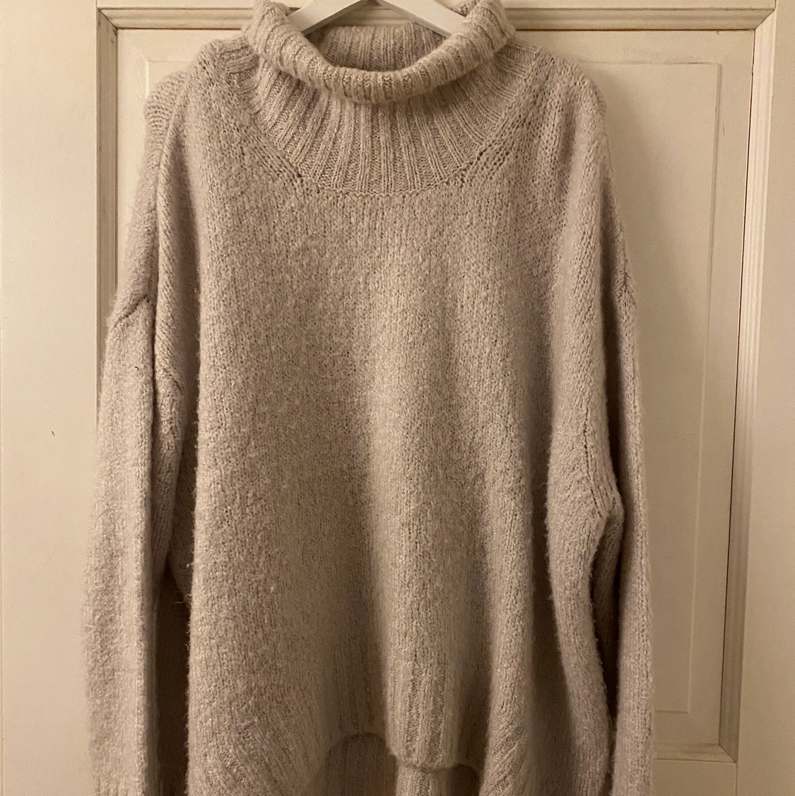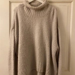 Grå/beige stickad, ganska lång tröja. Jättefin över klänningar & kjolar! Inte använd mycket. Passar S-L beroende på bilen fit man vill ha! Jag har vanligtvis S och är 177 cm