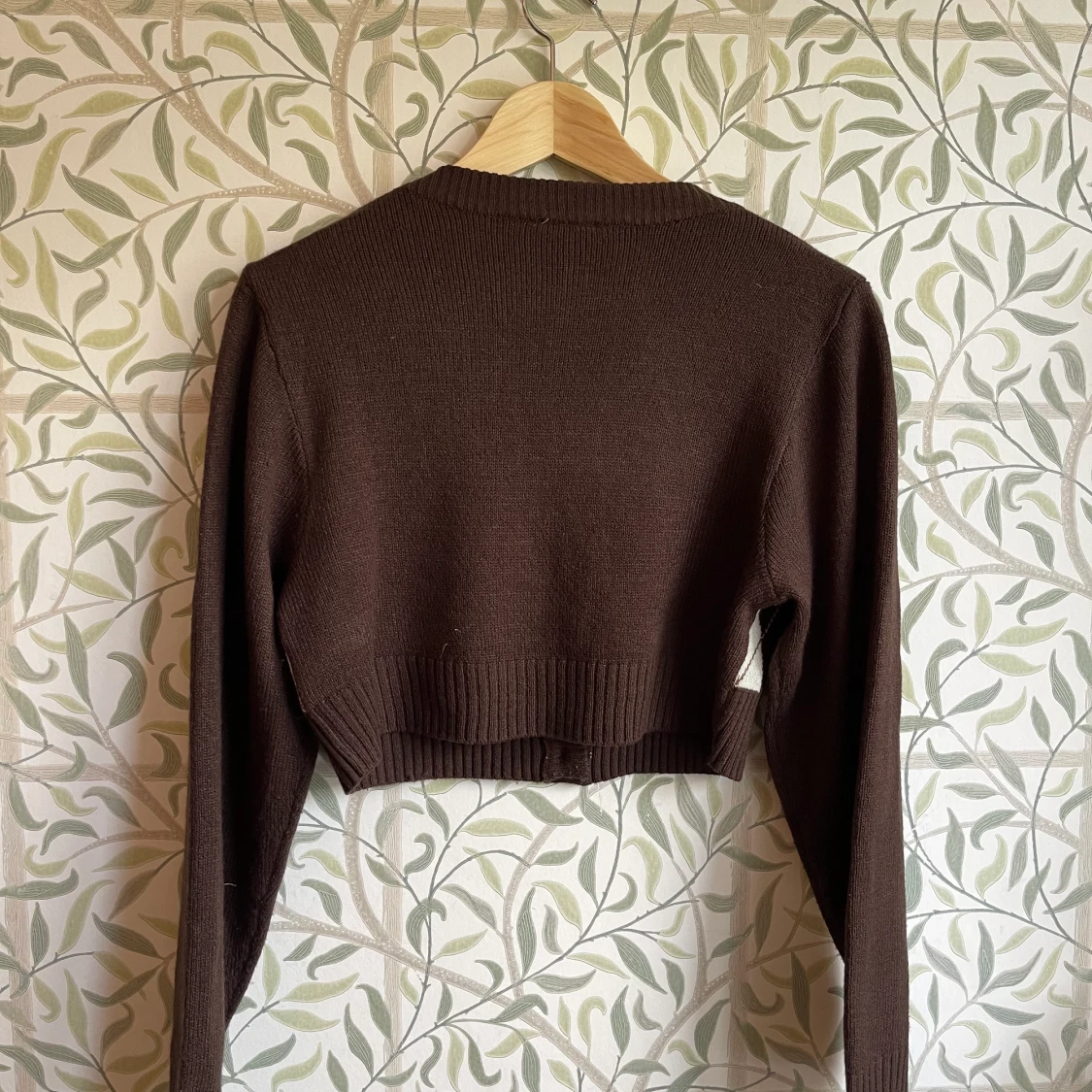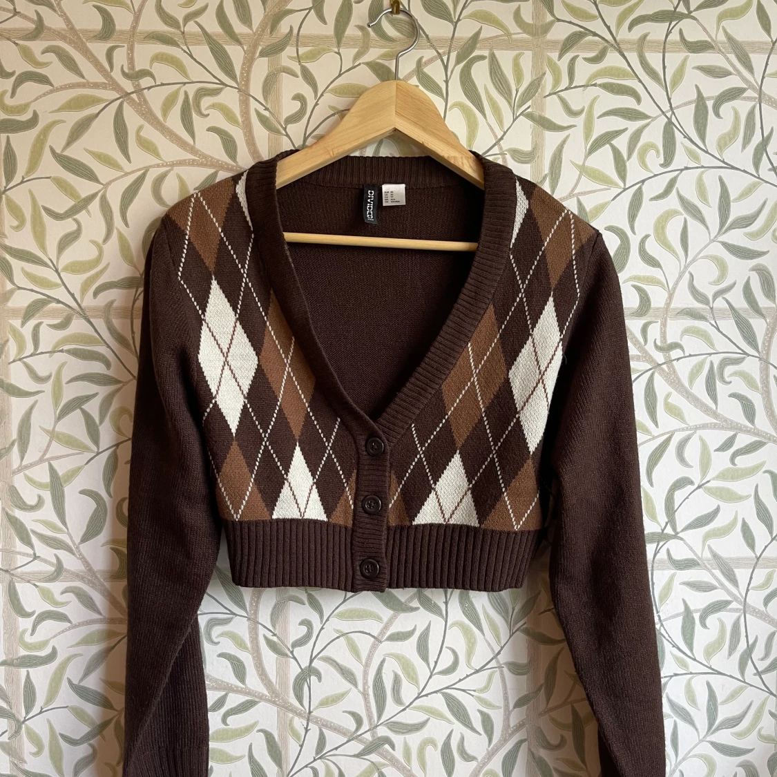 Snygg cropped, mönstrad, kofta från H&M som kan kombineras med det mesta. Koftan har bara använts en gång och är i topp skick samt inte stickig!!! Fint att ha till en outfit en krispig höstdag!