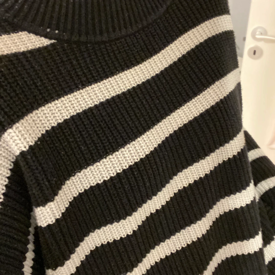 Vitrandiga svart stickad tröja från HM. Lite större passform