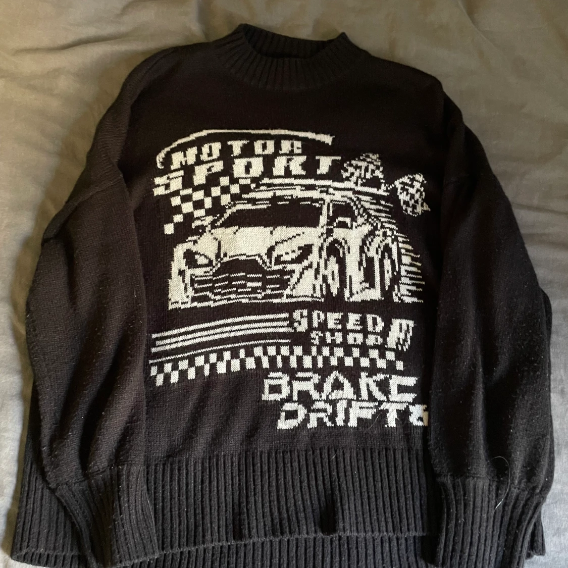Stickad tröja med bil tryck på. Har använt den ett antal gånger men slutade nu i början av våren.