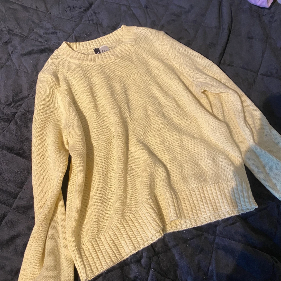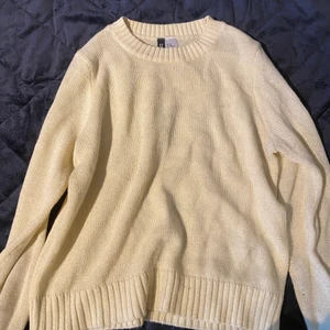 En fin stickad tröja från H&M som är i babygul/ljusgul. Aldrig nästan andvänt de gult inte passar till min hårfärg så bra. Nypris 150kr men säljer för 70kr och kunden står för frakten🥰 storlek XS men passar upp till M då den är väldigt stretchig och mjuk i tyget