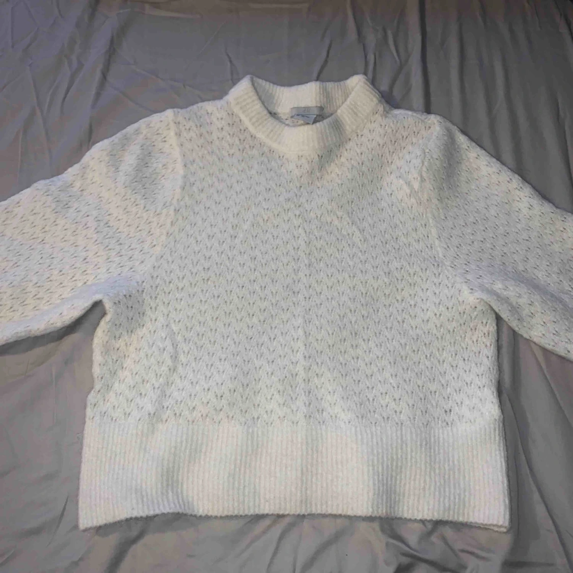 En fin vit stickad tröja som är jätte snygg över en skjorta men även som den är