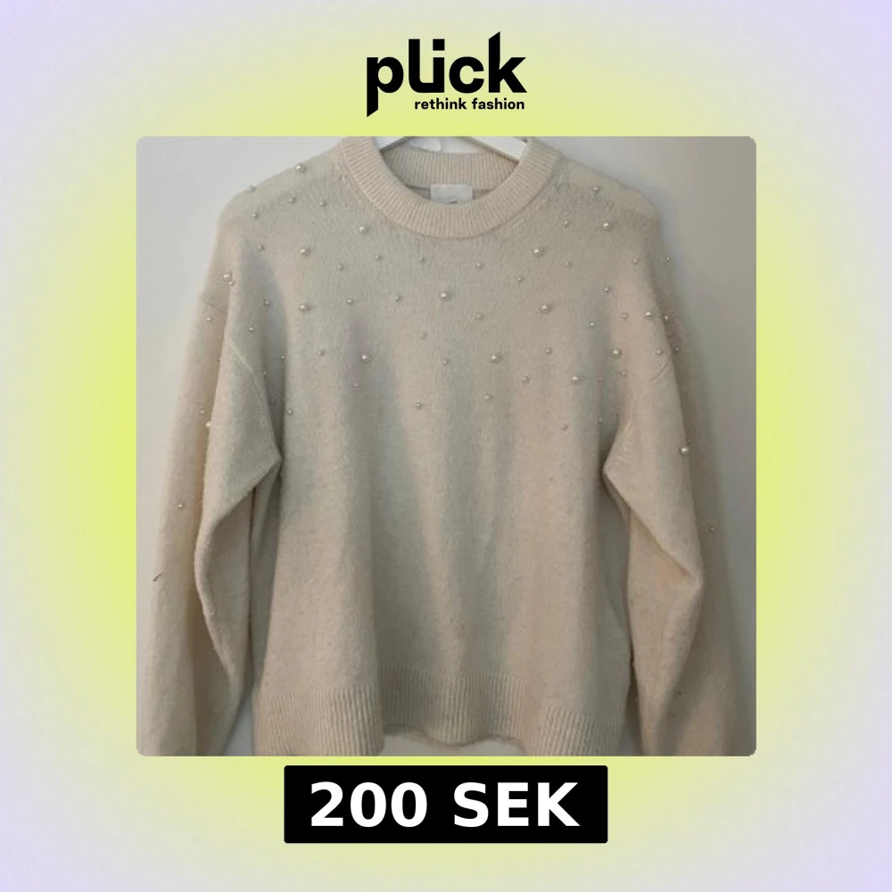 Superfin vit stickad tröja från H&M med pärldetaljer över hela framsidan och ärmarna.