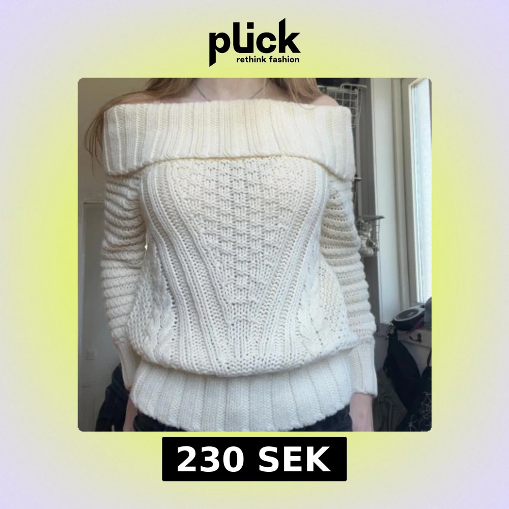 Säljer en superfin offshoulder stickad tröja i cremevitt. Tröjan har bred krage som vilar över axlarna och ett snyggt stickat mönster framtill. Perfekt för dig som vill ha en mysig men ändå trendig look.