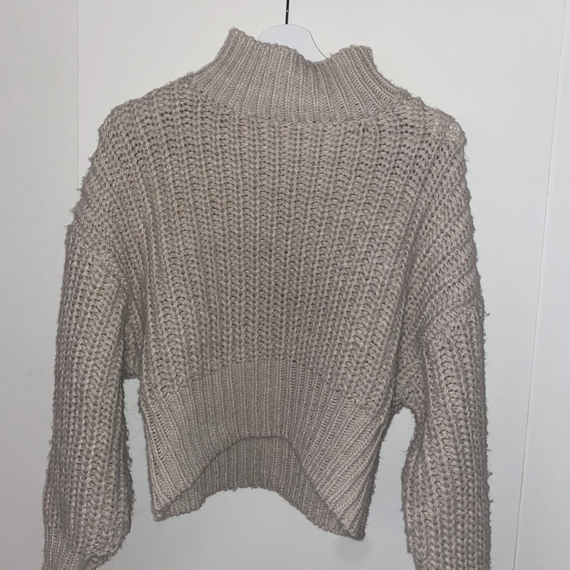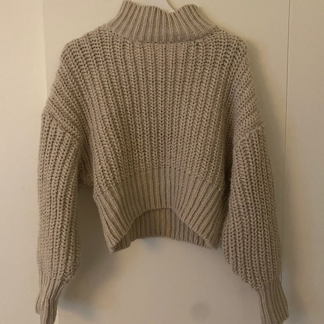 En beige stickad tröja från H&M. Storlek S men passar nog xs till m beroende hur man vill att den ska sitta. Använd kanske 5 gånger, mycket bra skick. Köparen står för frakten